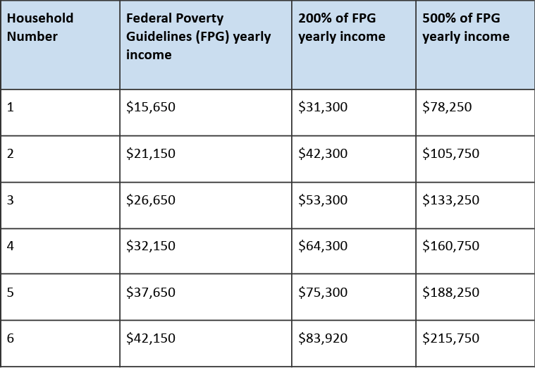 Children whose family income is at or below 200% of FPG